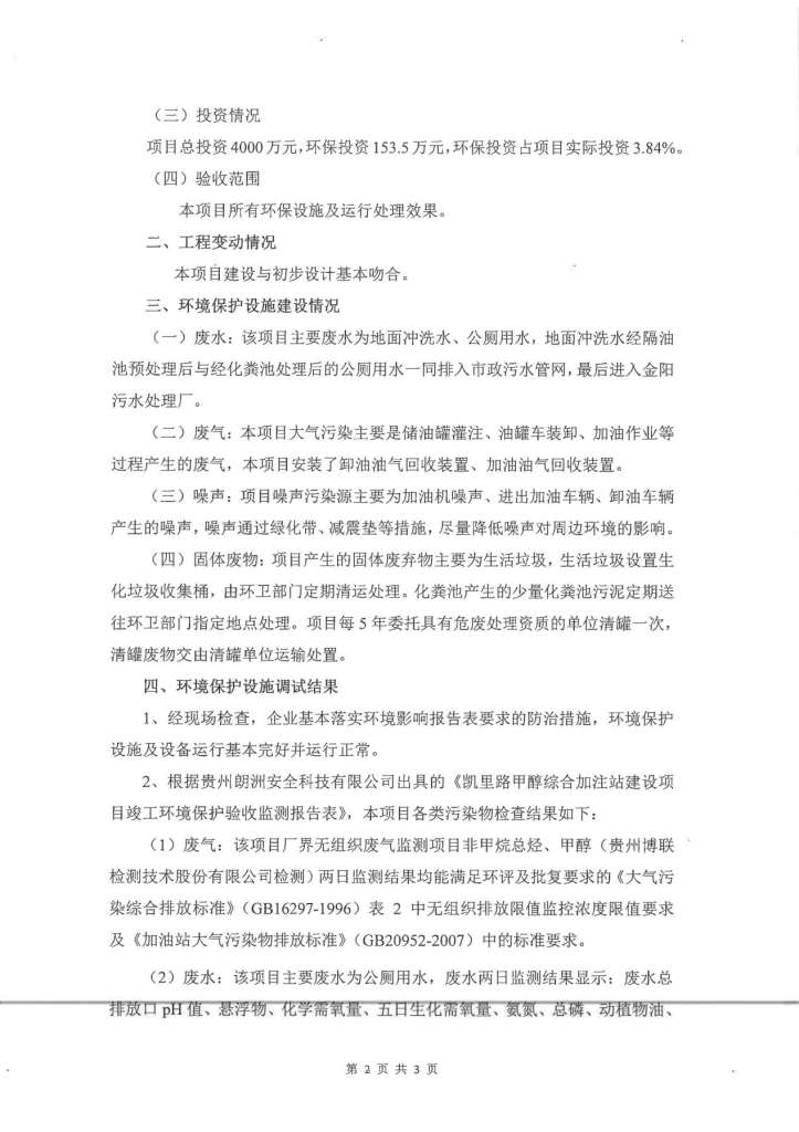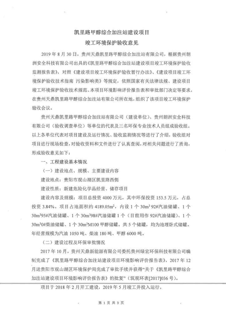 凱里路甲醇綜合加注站驗收意見