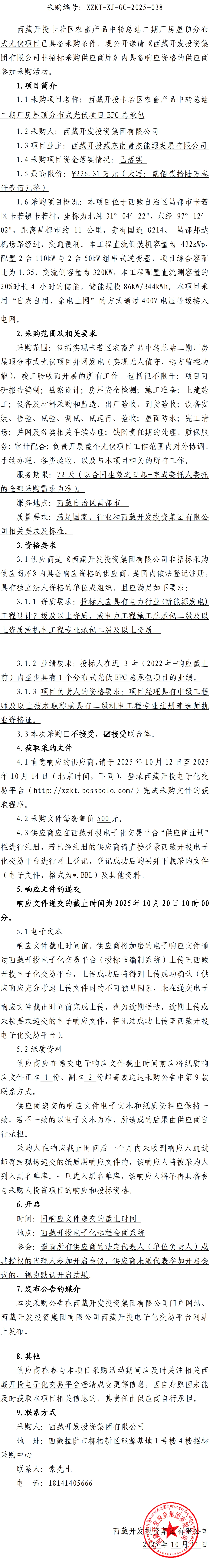 西藏開(kāi)投卡若區(qū)農(nóng)畜產(chǎn)品中轉(zhuǎn)總站二期廠房屋頂分布式光伏項(xiàng)目詢(xún)比采購(gòu)公告